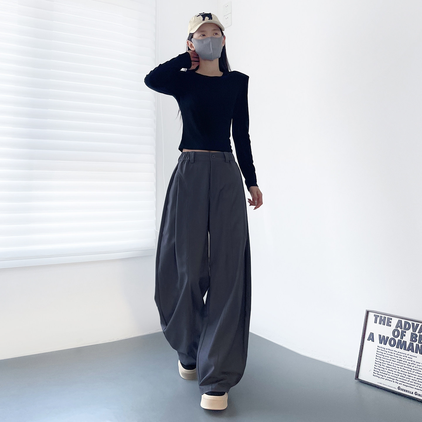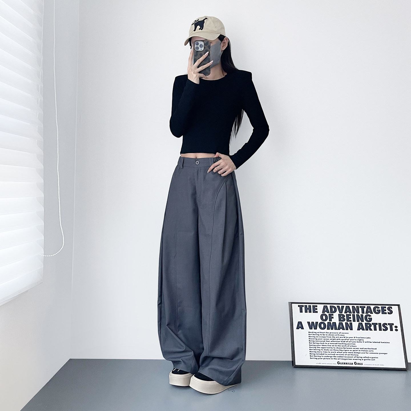 大码高腰压褶弯刀阔腿裤女2026春季新款胖mm显瘦宽松垂坠感西装裤