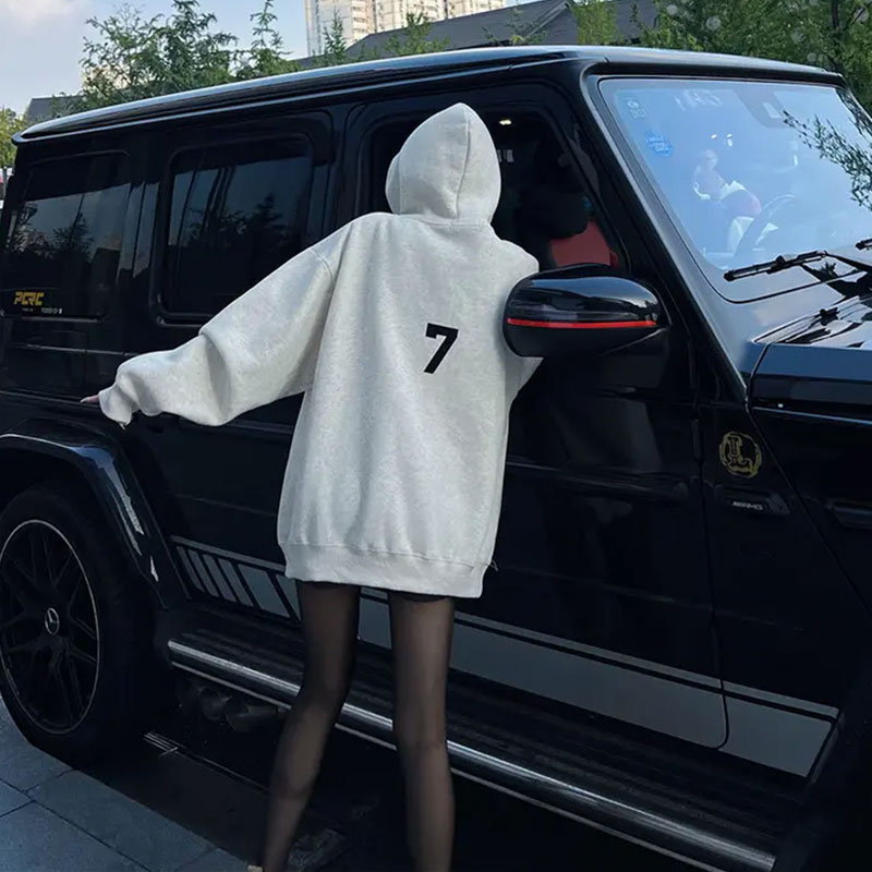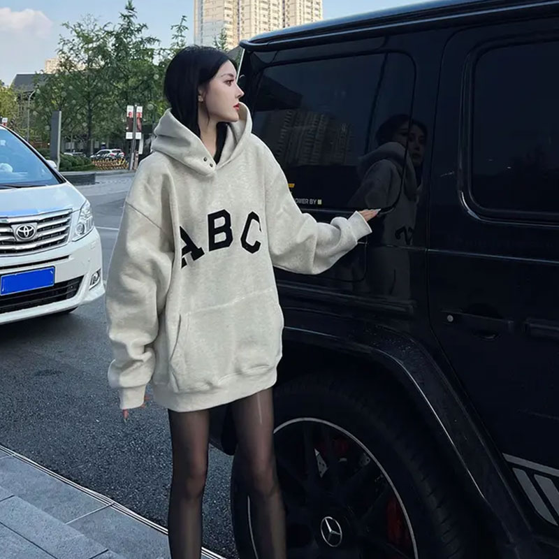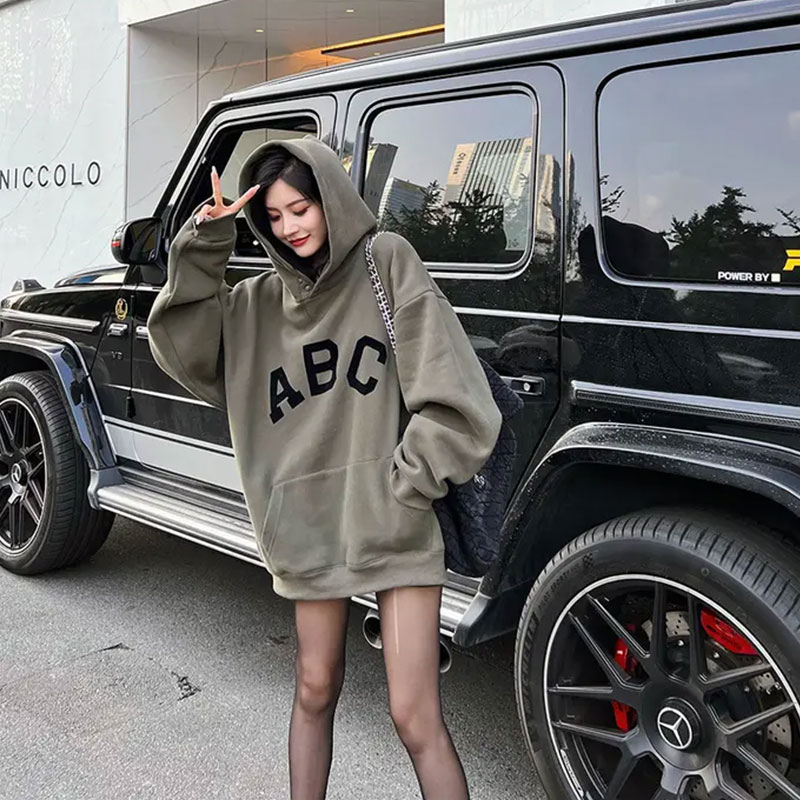 2025春秋装新款爆款美式慵懒连帽卫衣女中长款遮屁股vintage上衣
