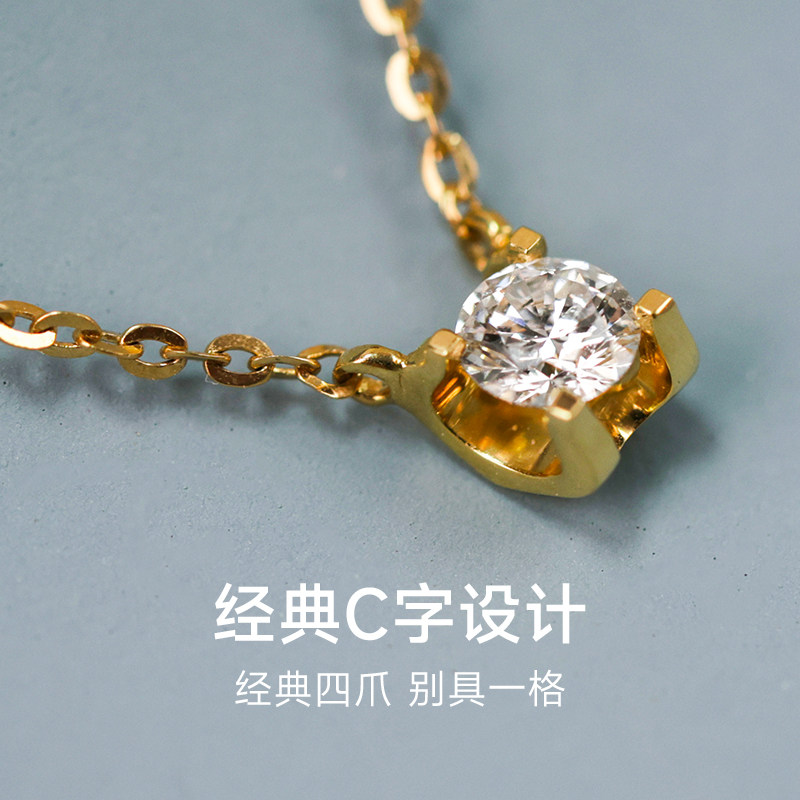 【培育】VRAI/芮爱牛头扣心圆钻毛衣项链钻石吊坠18K金 情侣礼物