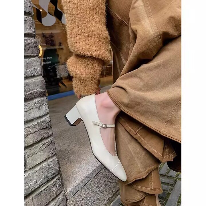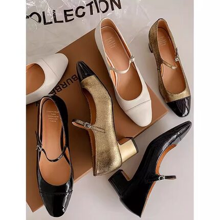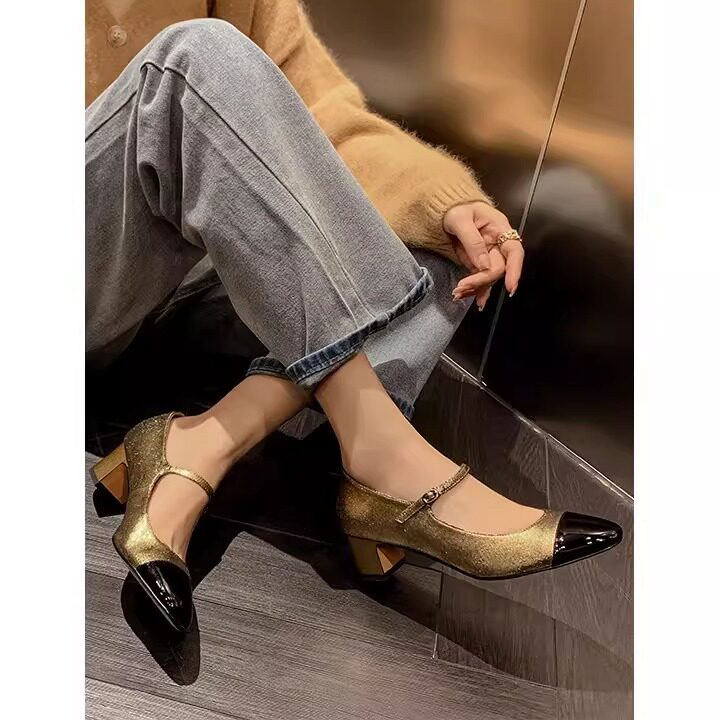真皮法式气质黑金富家千金鞋晚风配裙子玛吉珍女鞋中跟玛丽珍单鞋
