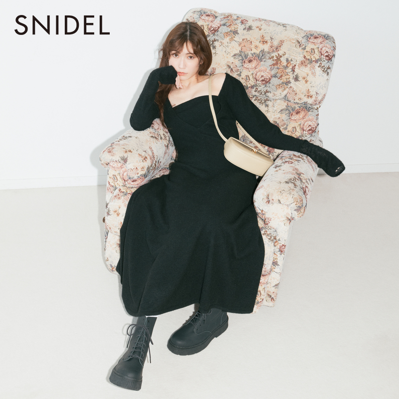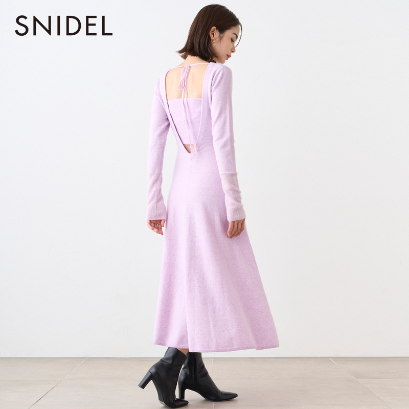 SNIDEL秋冬露背抹胸系带针织长款连衣裙套装SWNO235058