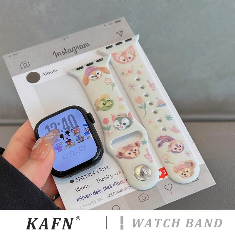 适用于苹果s10手表带iwatch9迪士尼硅胶表带s8玲娜贝儿applewatch7/6/5/4智能手表运动腕带se代女款夏季透气