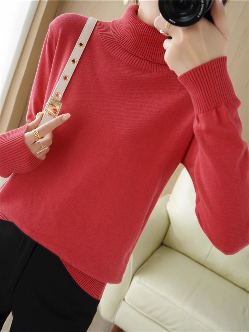 纯棉线高领套头长袖毛衣女加厚保暖内搭打底针织衫短款全棉线上衣