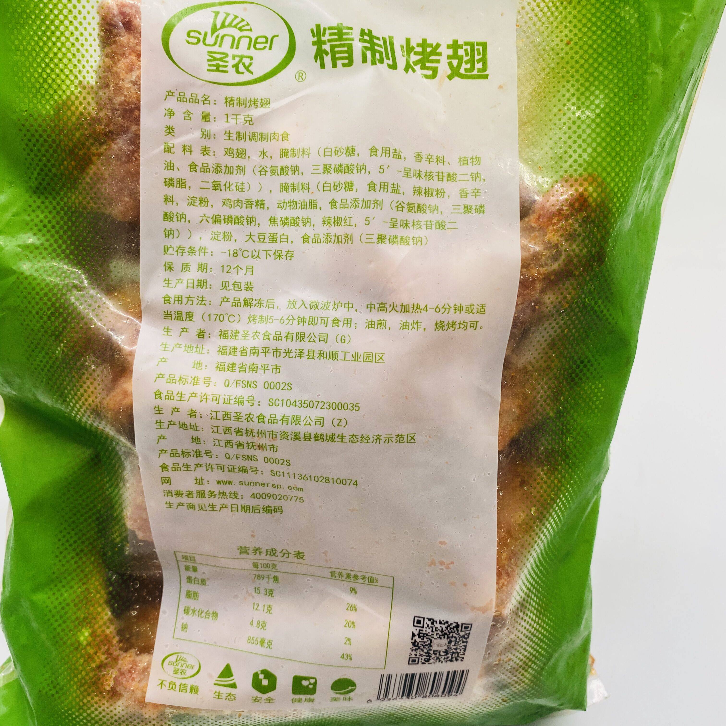 圣农精制烤翅1kg12对鸡翅奥尔良烤对翅油炸半成品油炸对翅