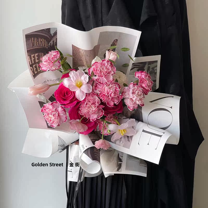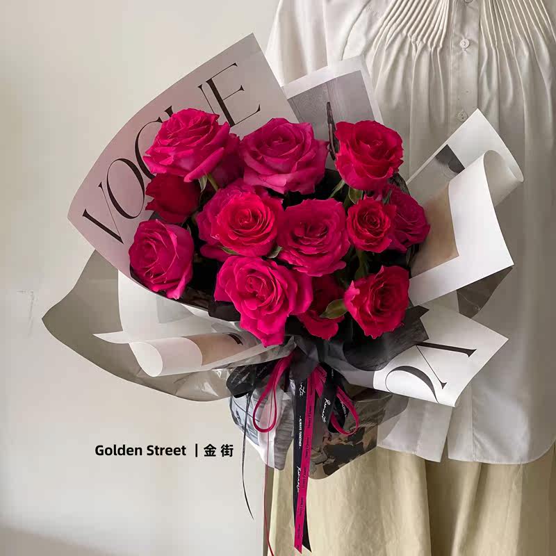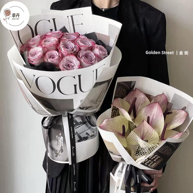 情人节新款时尚花艺报刊牛皮纸杂志封面油画纸鲜花花束包装纸