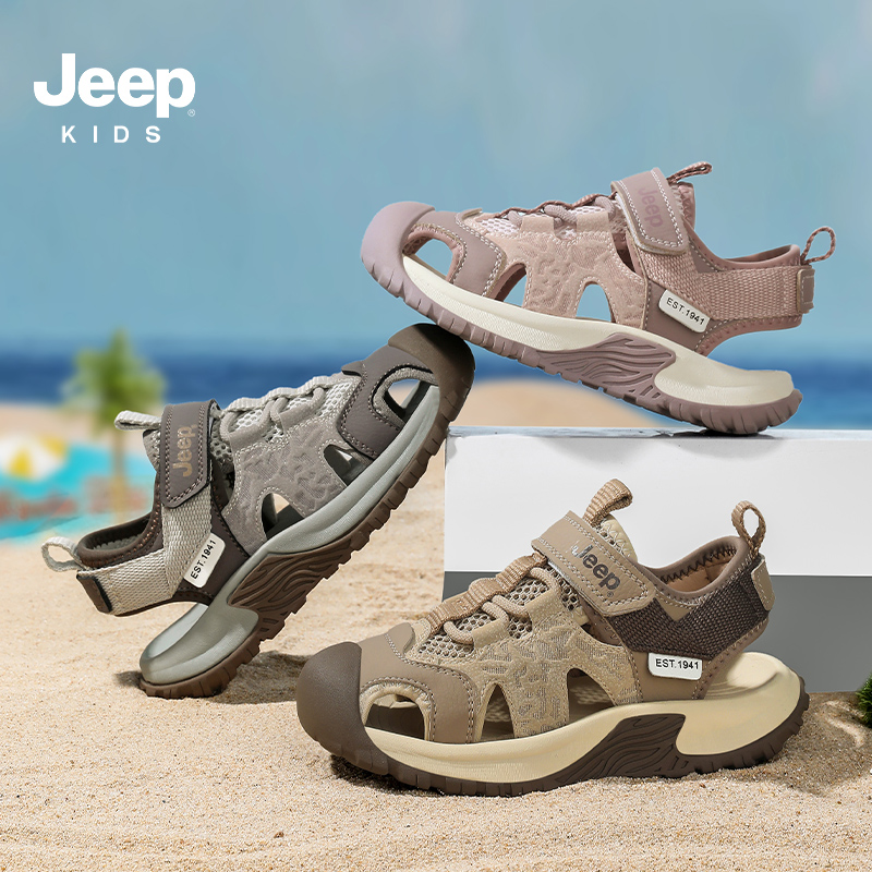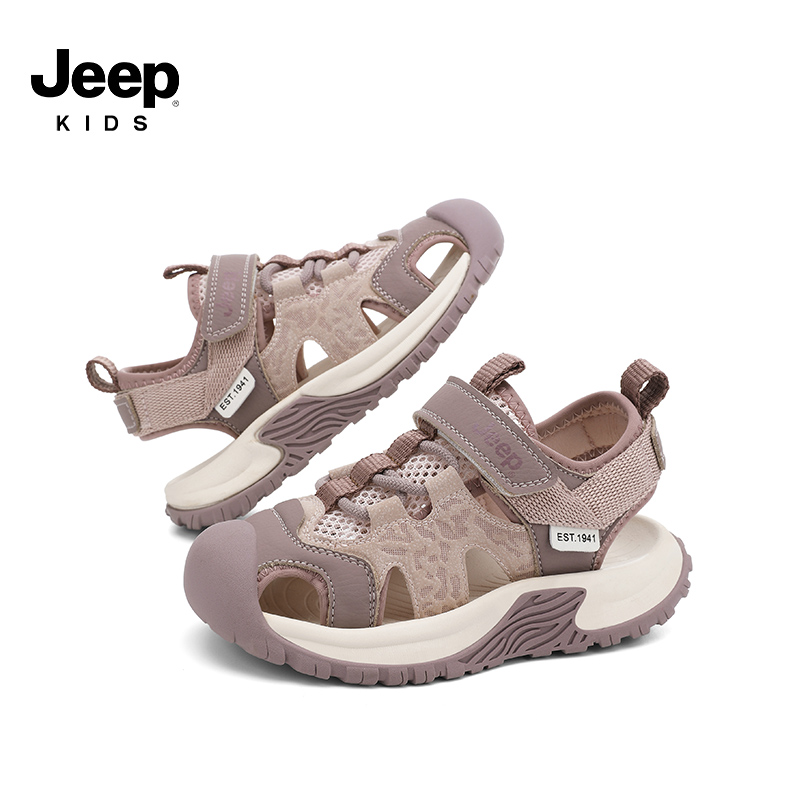 Jeep女童网面包头凉鞋2025夏季新款运动溯溪鞋儿童女孩外穿沙滩鞋
