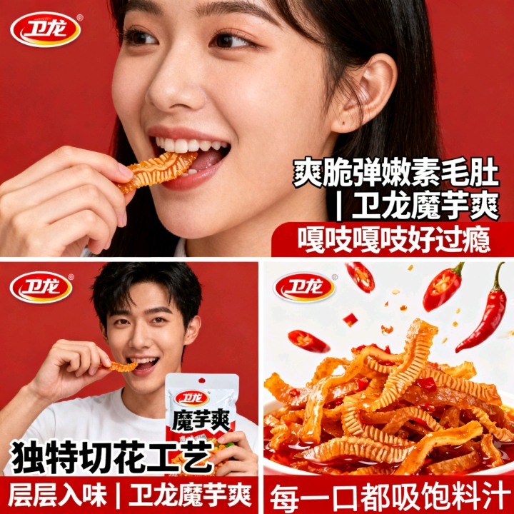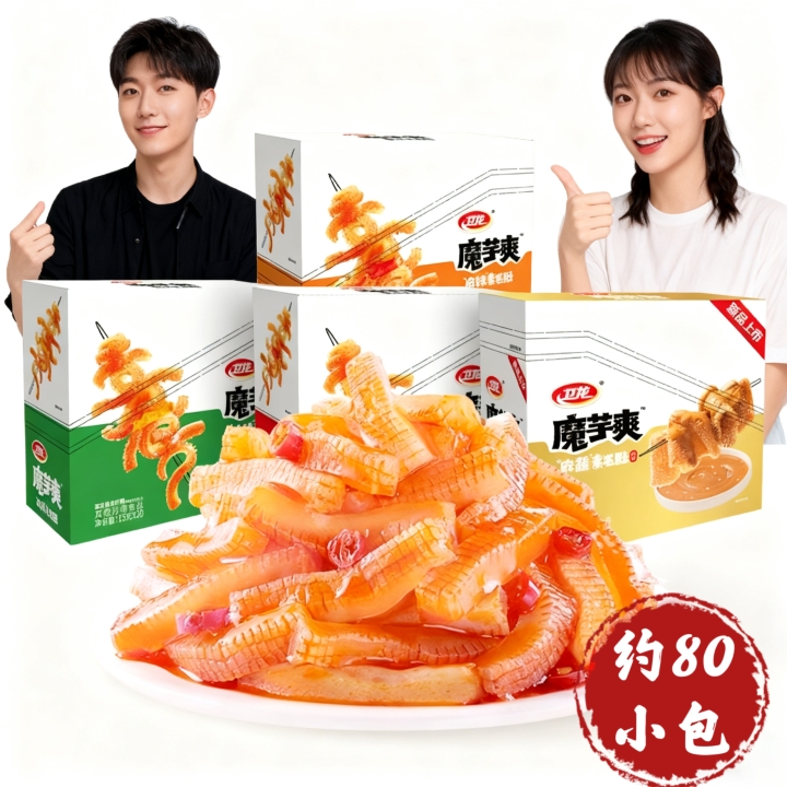 80包卫龙魔芋爽666g香辣麻酱麻辣小龙虾素毛肚夜宵零食