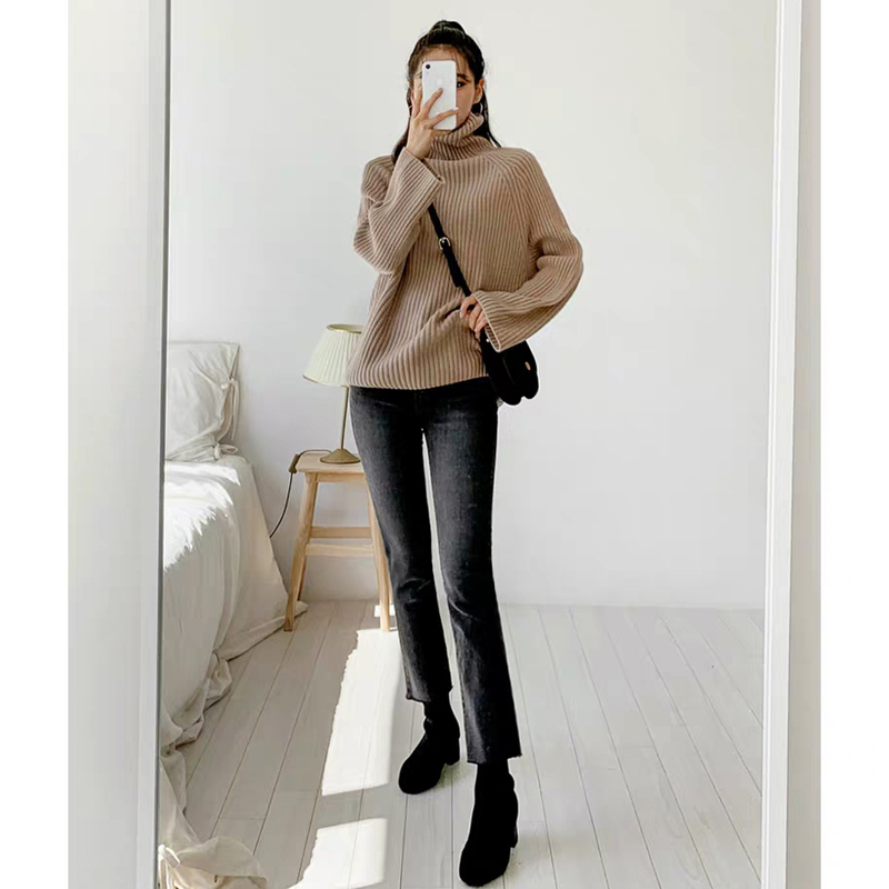 烟灰色加绒牛仔裤女2021年秋冬新款高腰阔腿宽松显瘦九分烟管直筒