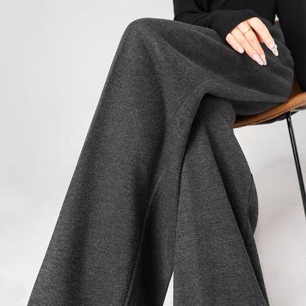 醋酸羊毛西装裤女秋冬2025新款灰色毛呢阔腿裤加绒加厚直筒长裤子