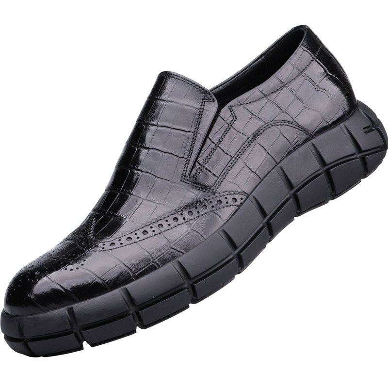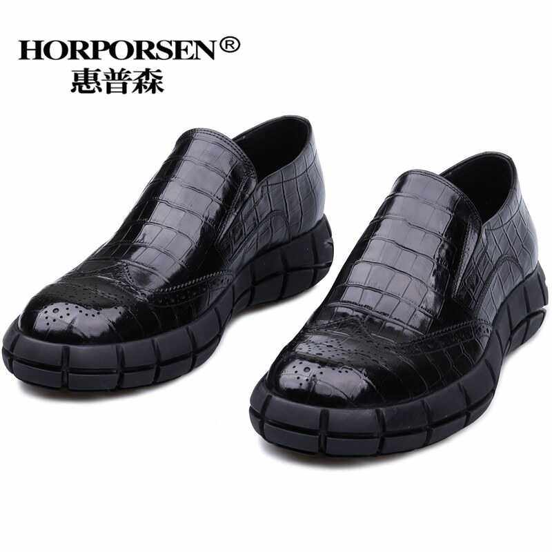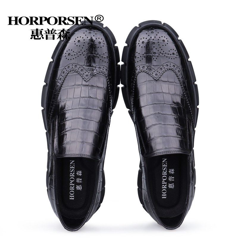 HORPORSEN/意大利布洛克雕花男皮鞋真皮一脚蹬懒人鞋厚底牛皮男鞋