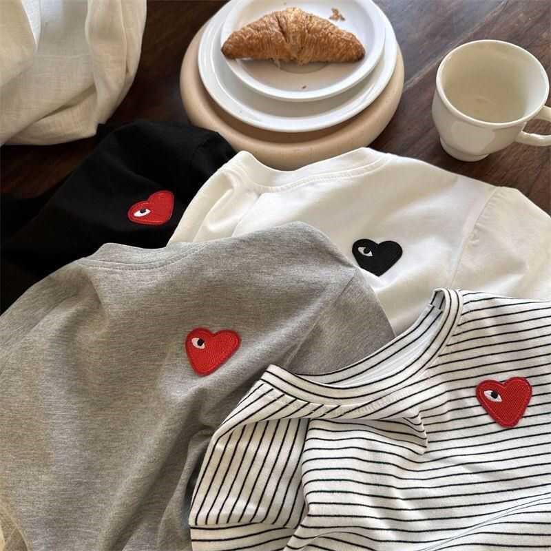 儿童百搭短袖T恤男童夏季纯棉白色打底衫薄款宝宝爱心T恤女童上衣