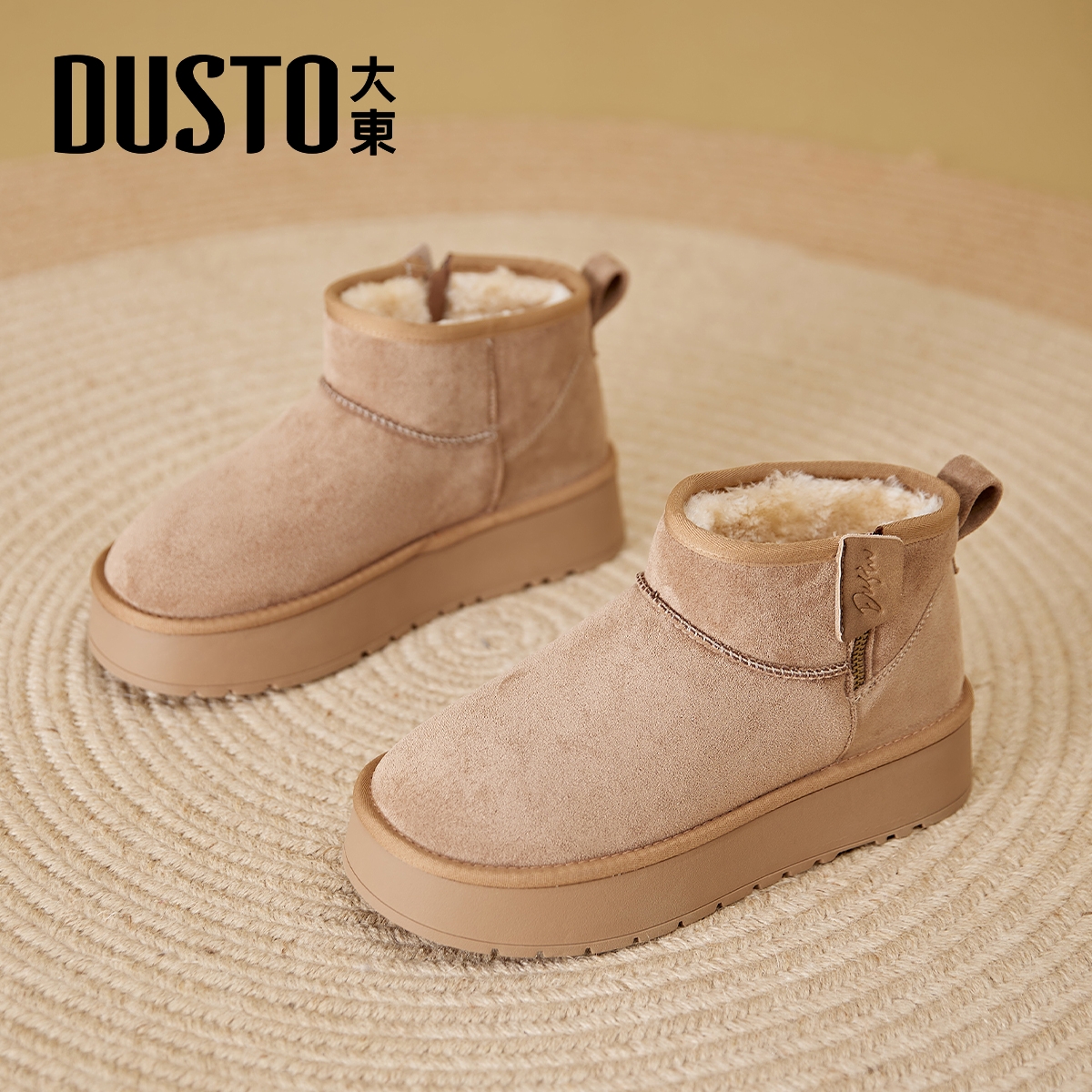 大东厚底雪地靴女款2025新款冬季皮毛一体雪地棉保暖加绒加厚棉鞋