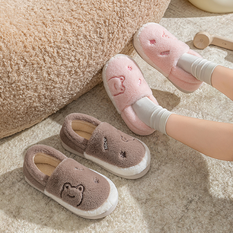 室内保暖月子鞋棉拖鞋包跟男女可爱居家用加绒棉鞋冬季情侣毛拖鞋