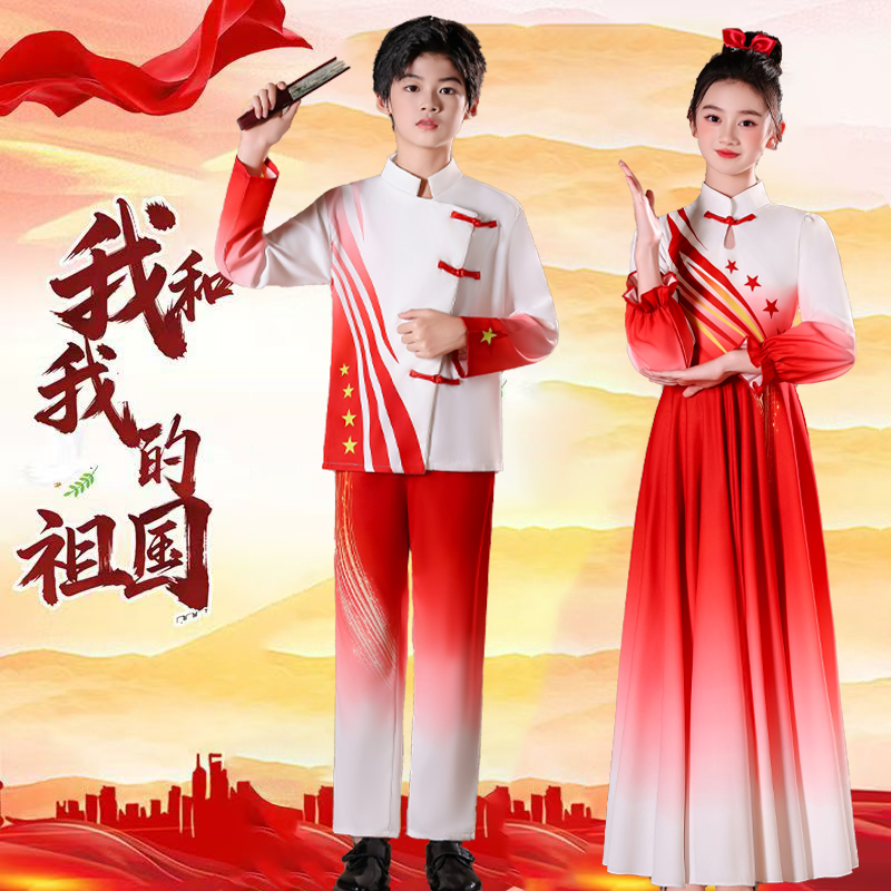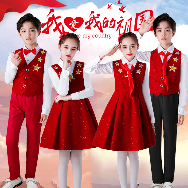 儿童演出服小学生合唱团服装演讲红领巾男女童表演服爱国诗歌朗诵