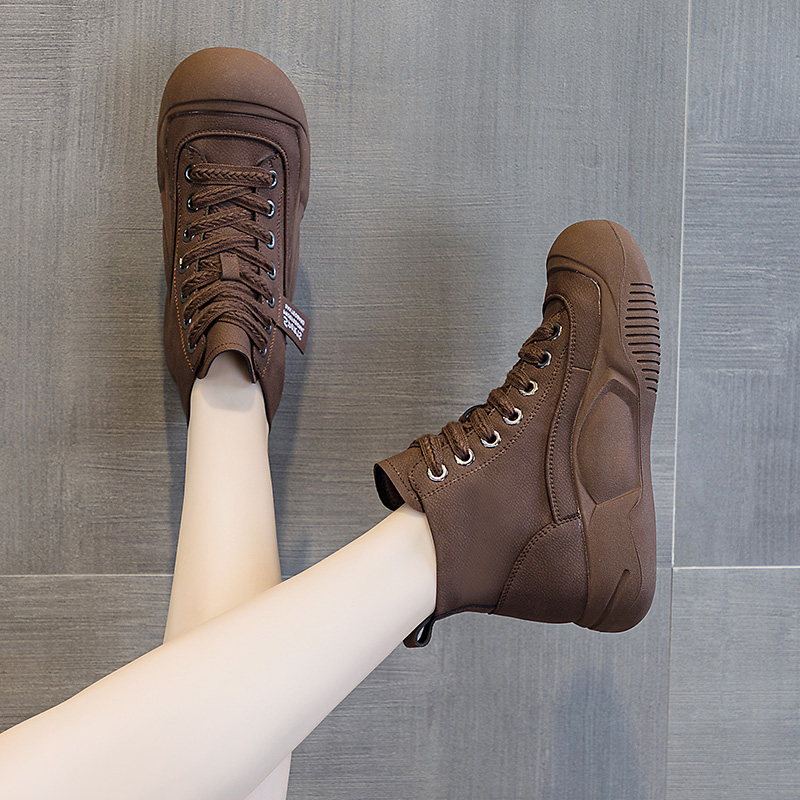 软厚底真皮休闲时尚萌丑高帮女鞋