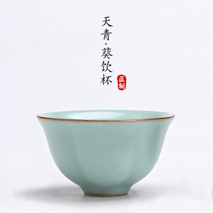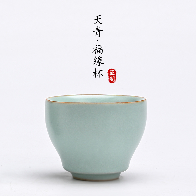 汝窑天青主人杯功夫茶杯个人单杯开片可养陶瓷品茗杯茶碗喝茶