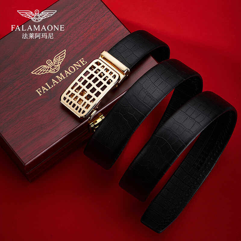 法莱阿玛尼皮带男真皮百搭裤腰带纯牛皮年轻人鳄鱼纹商务男士腰带
