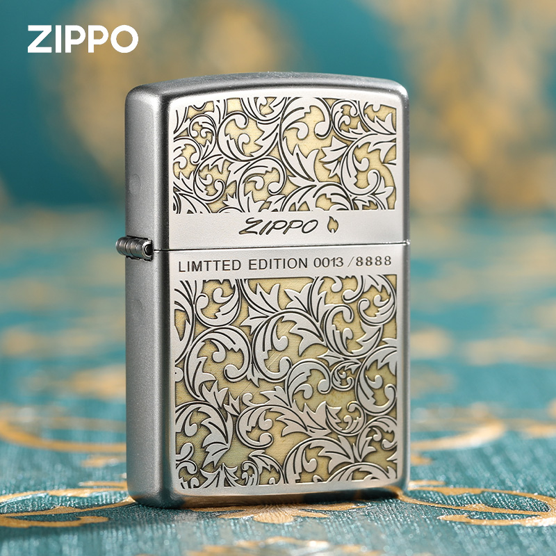 zippo打火机磨砂深刻幸运唐草