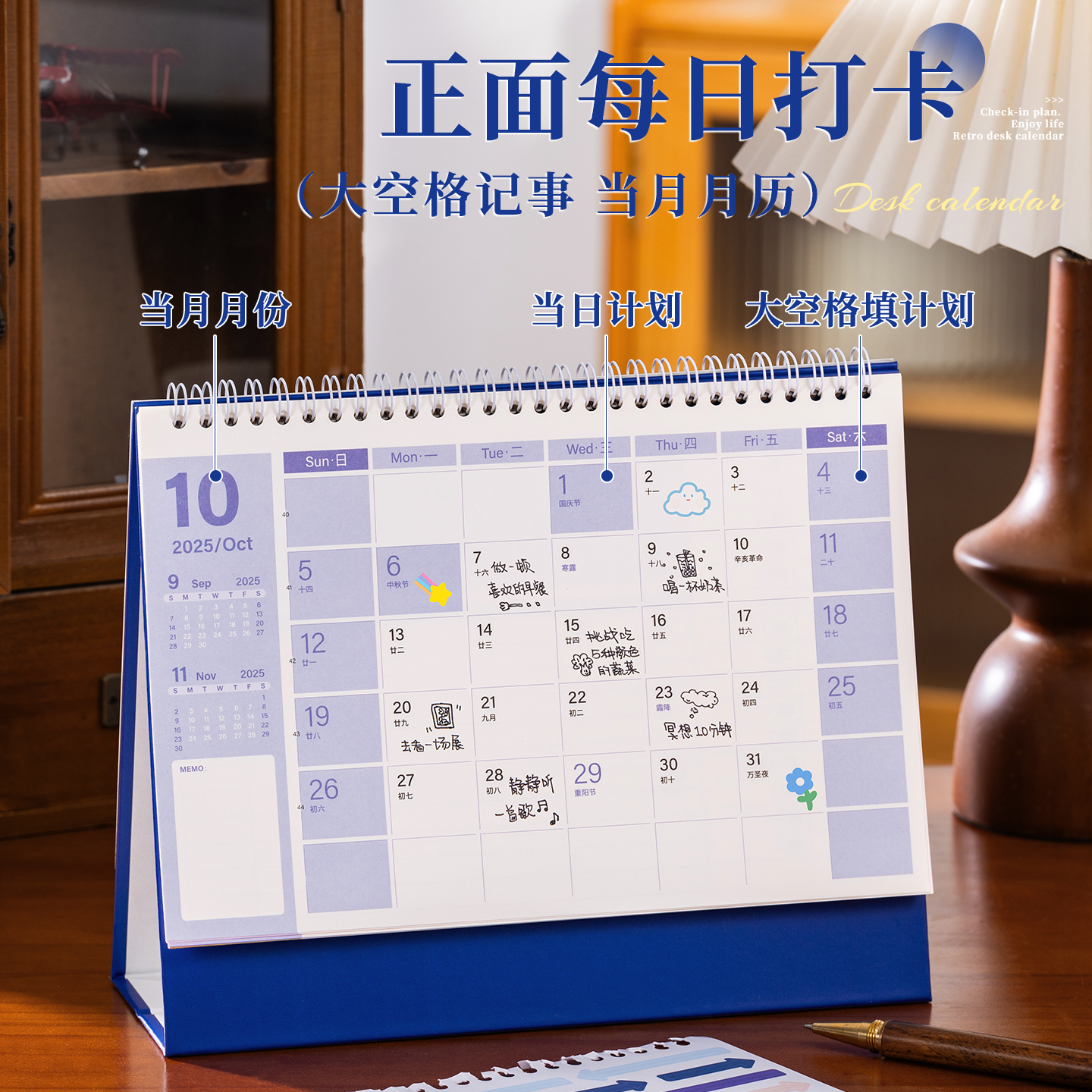 2026台历简约商务大格子记录备忘高考倒计时计划本年历办公室高档桌面摆件日历月历定制2025年小台历