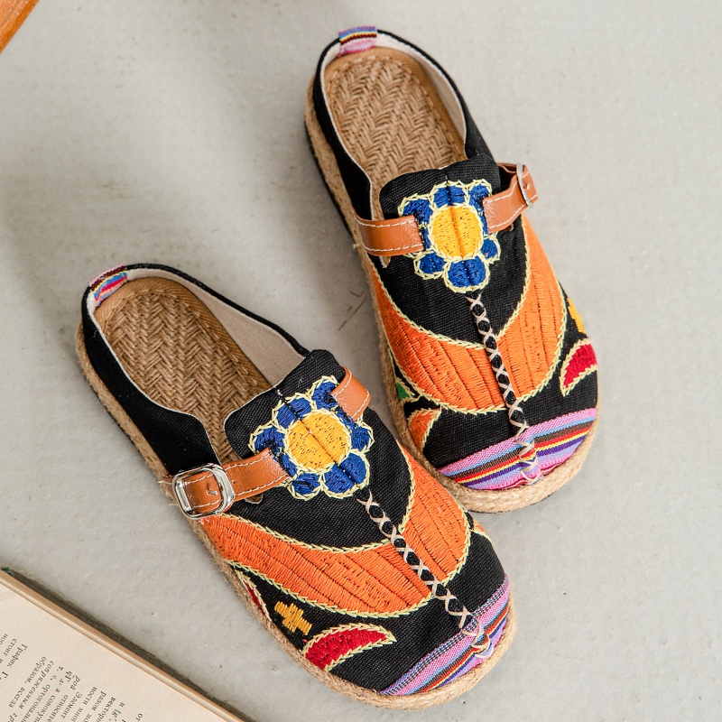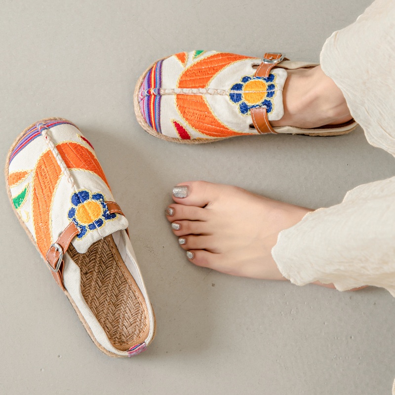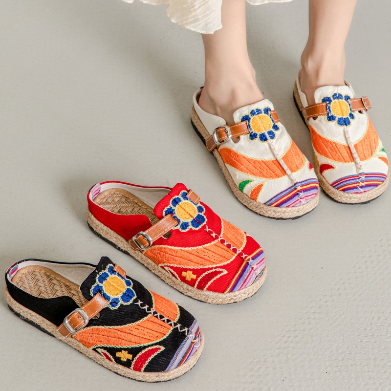 透气平底绣花鞋春秋款老北京布鞋女拖鞋轻便舒适一脚蹬百搭大头鞋