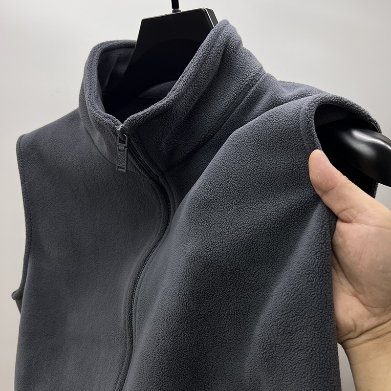 摇粒绒立领马甲男拉炼秋冬季加绒加厚双面奥粒绒无袖开衫外套背心