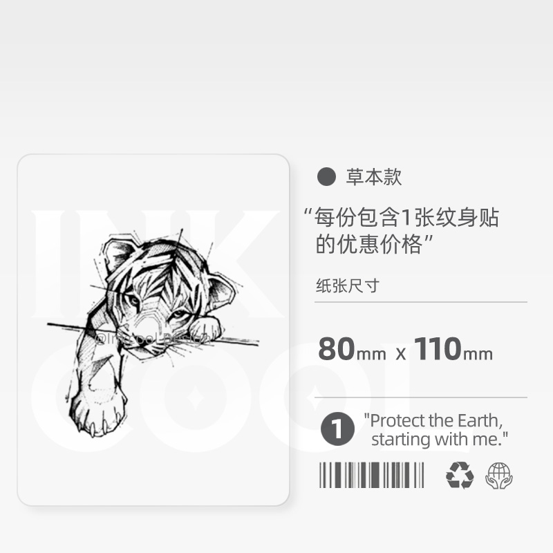 INKCOOL 萌虎掏纹身贴逼真可爱百搭防水持久草本纹身贴IK037