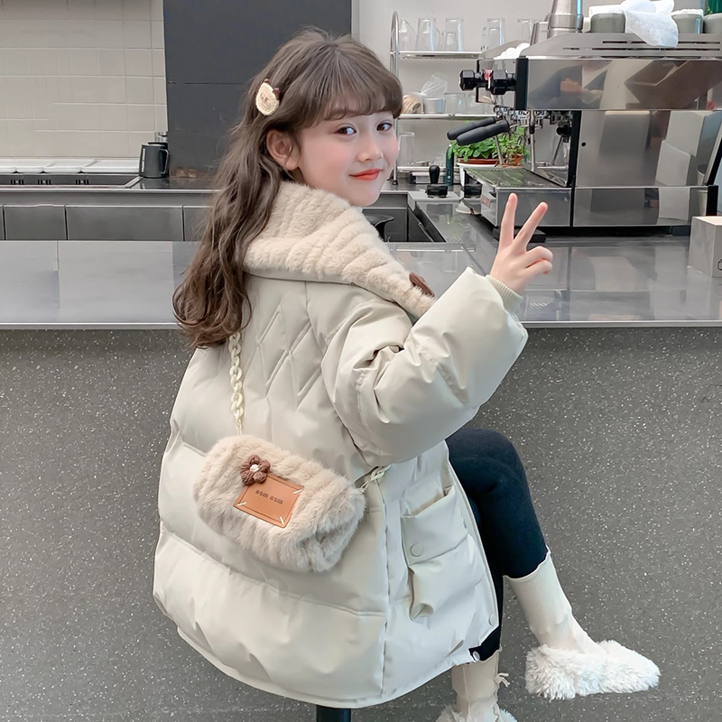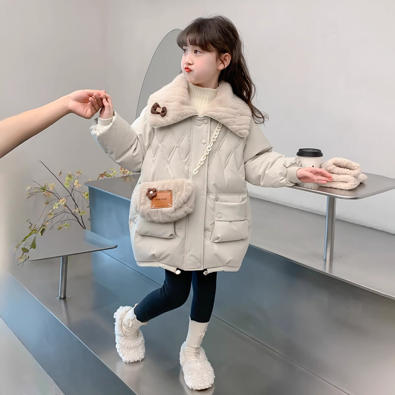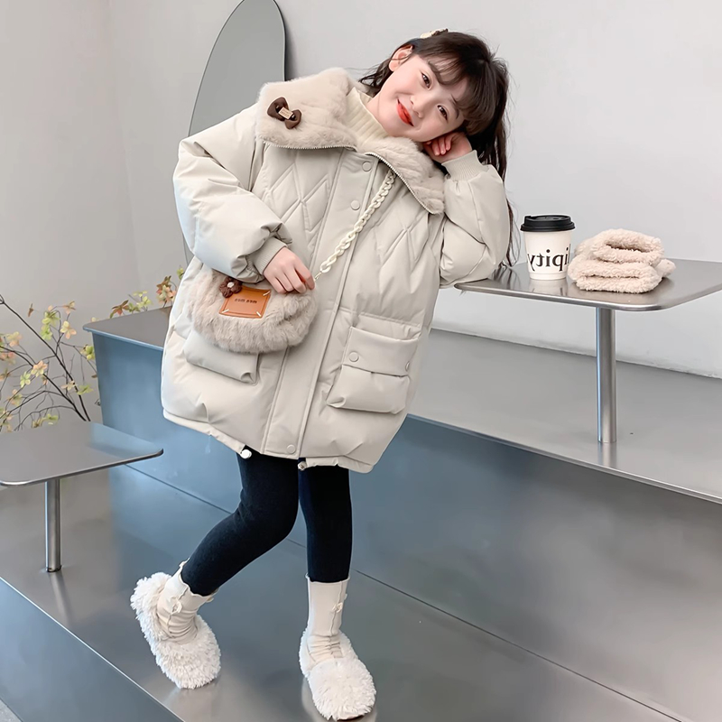 女童棉服冬装2025新款洋气小女孩中长款加厚外套儿童冬季保暖棉袄