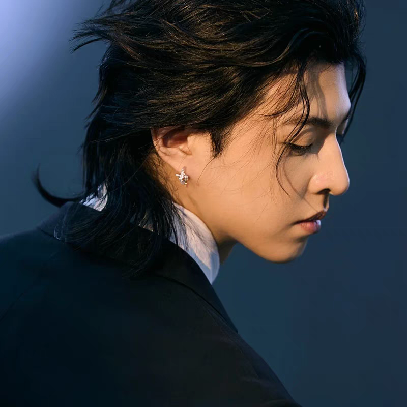 S925银明星同款十字架耳环男士痞帅小众高级感轻奢耳圈送生日礼物