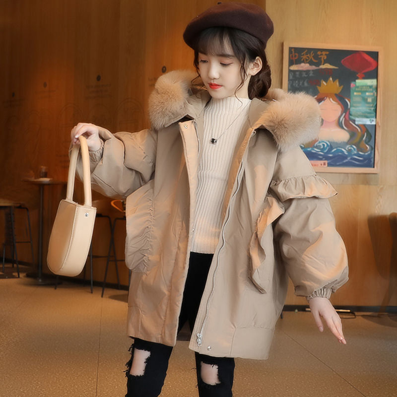 女童派克服棉衣新款秋冬装外套女孩洋气中长款加绒加厚羽绒棉棉服