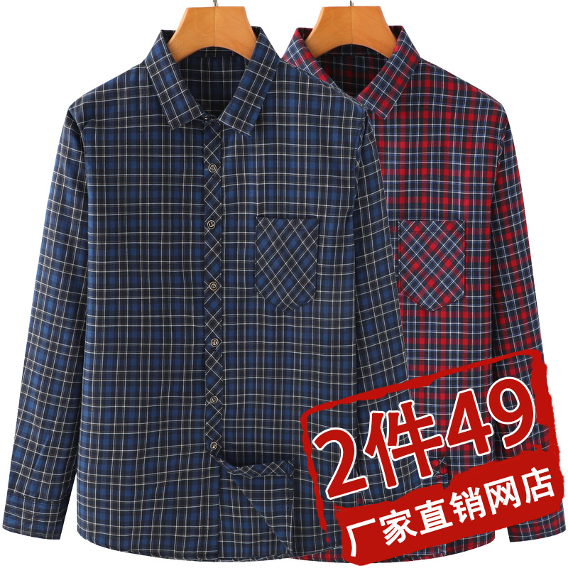 中年男衬衫长袖40-n50岁宽松夏装爸爸中老年男士薄款父亲衬衣