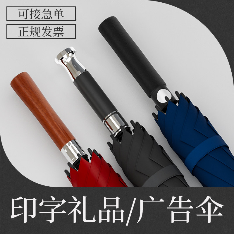 高端商务自动雨伞定制logo可印广告伞男士超大号直柄木制高尔夫伞