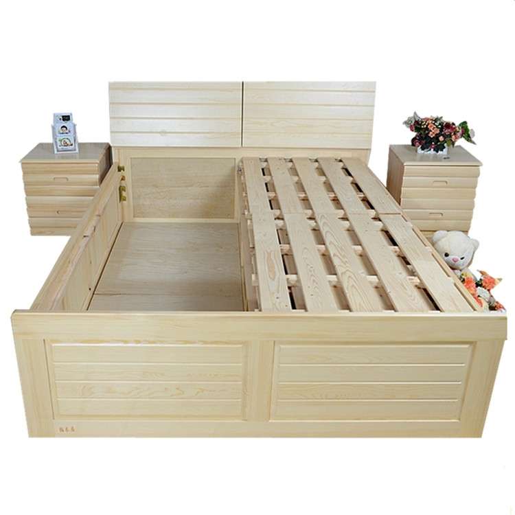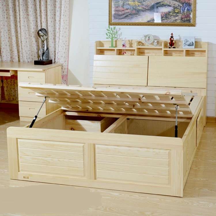 供应现代田园带书架松木实木床厂家直销高品质高箱现代实木床