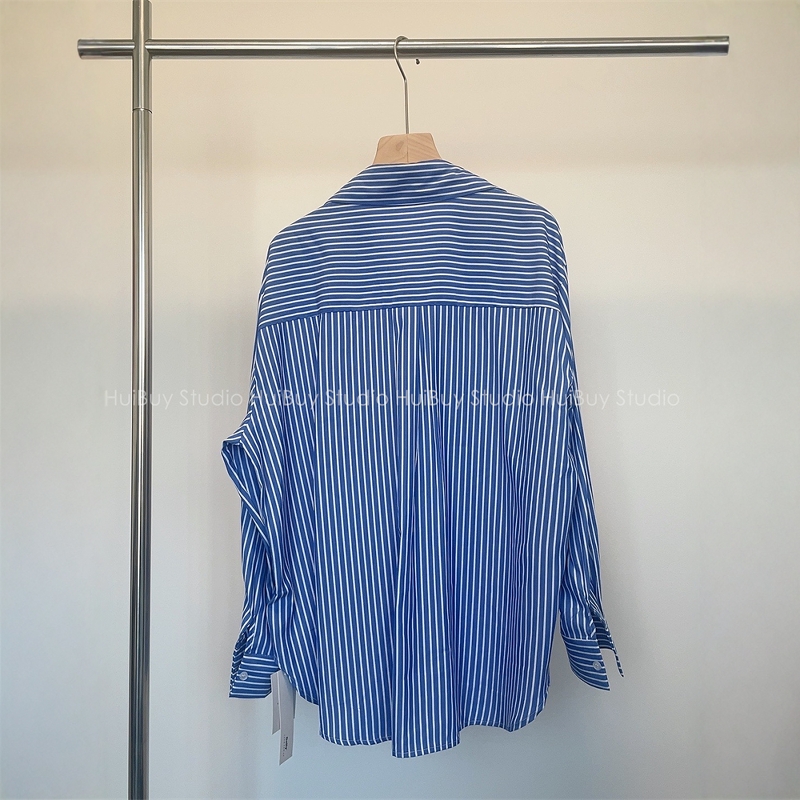 亲肤舒适!蓝白条纹长袖衬衫女春季韩版通勤百搭宽松衬衣ins潮
