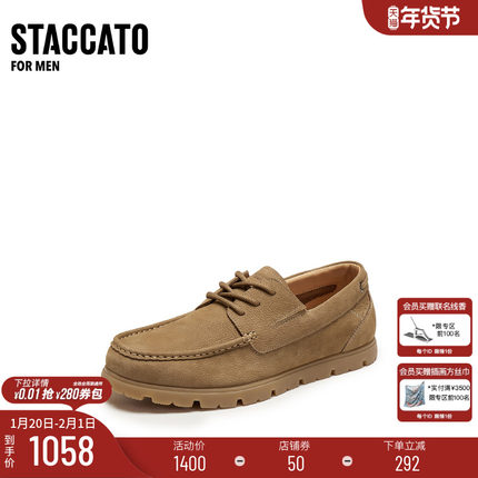 思加图2026新款复古休闲皮鞋乐福鞋平底鞋舒适增高男鞋子H8864AA6