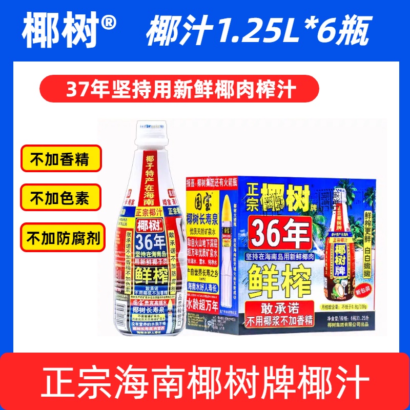 海南正宗椰树牌椰汁饮料天然植物蛋白椰子汁1.25L鲜榨新鲜