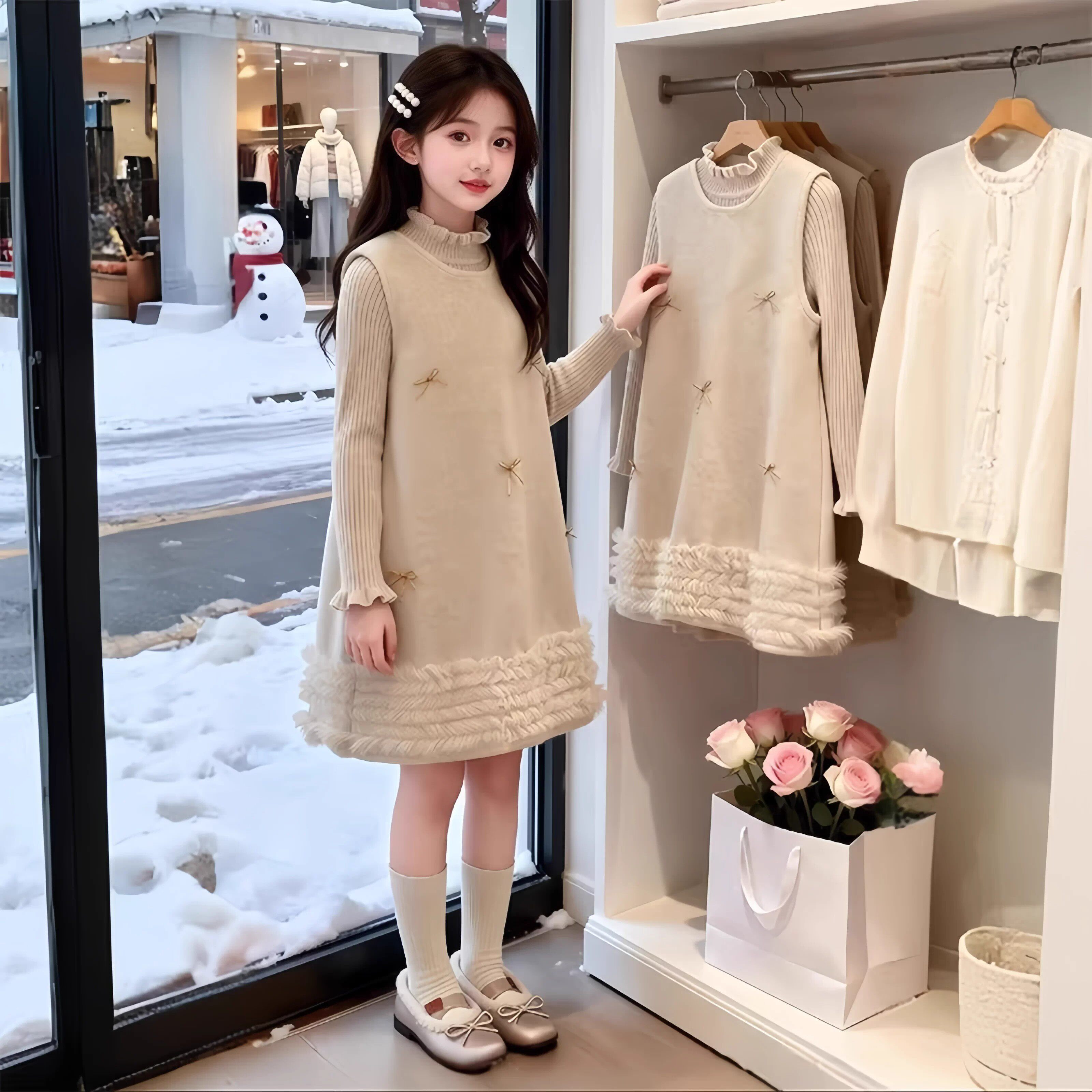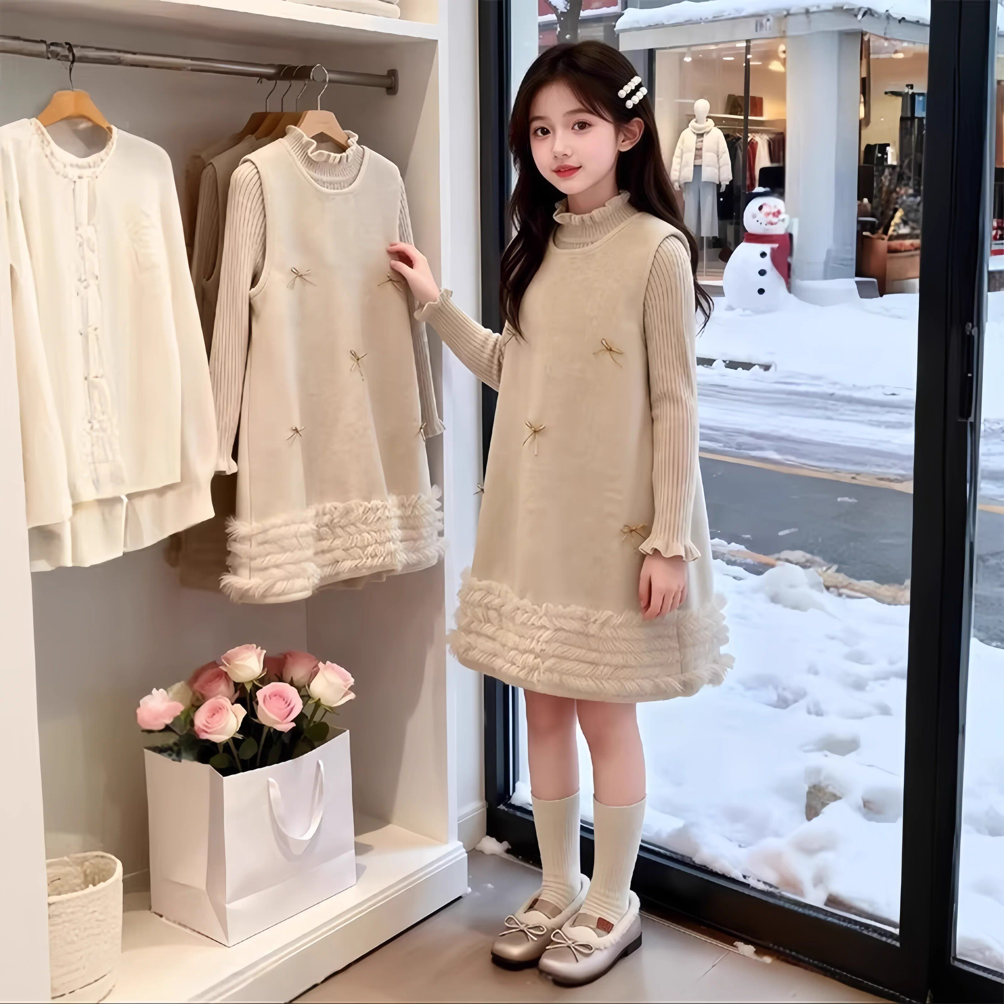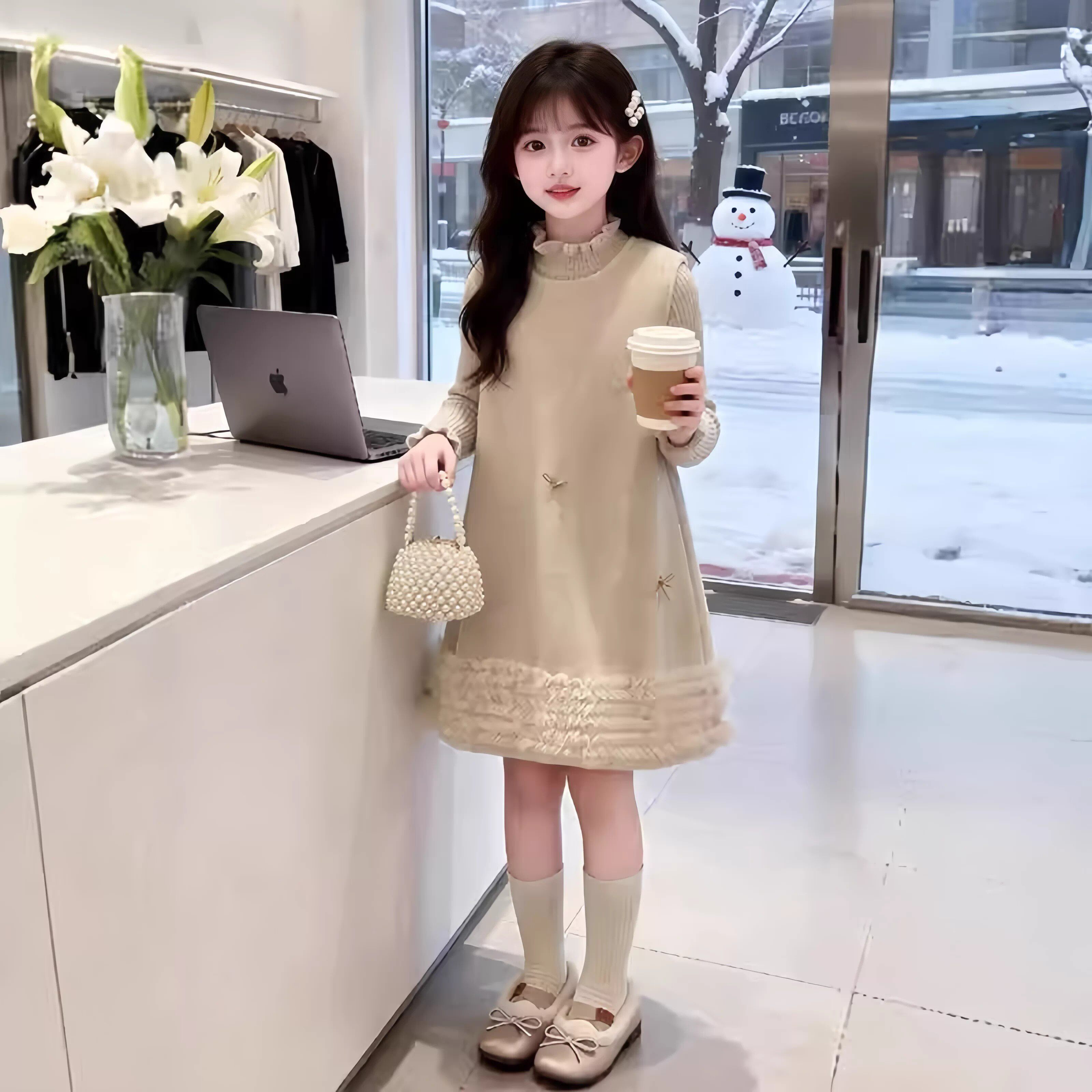 女童连衣裙秋冬2026新款超好看儿童小香风公主裙呢子背心裙两件套