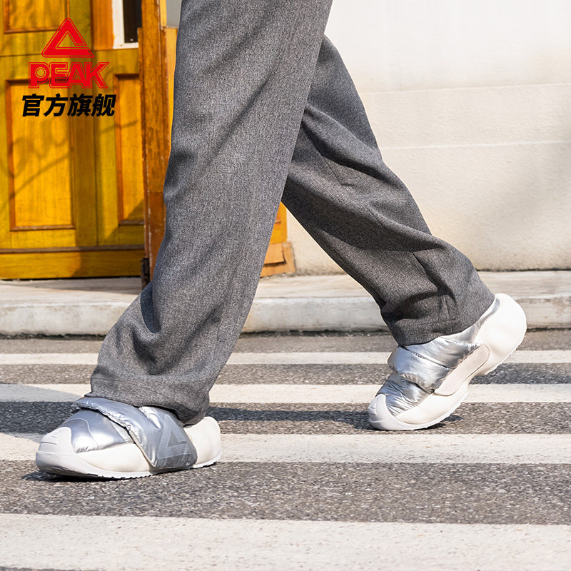 匹克态极云大三角面包鞋男冬季黑色一脚蹬厚底拖鞋女休闲鞋运动鞋