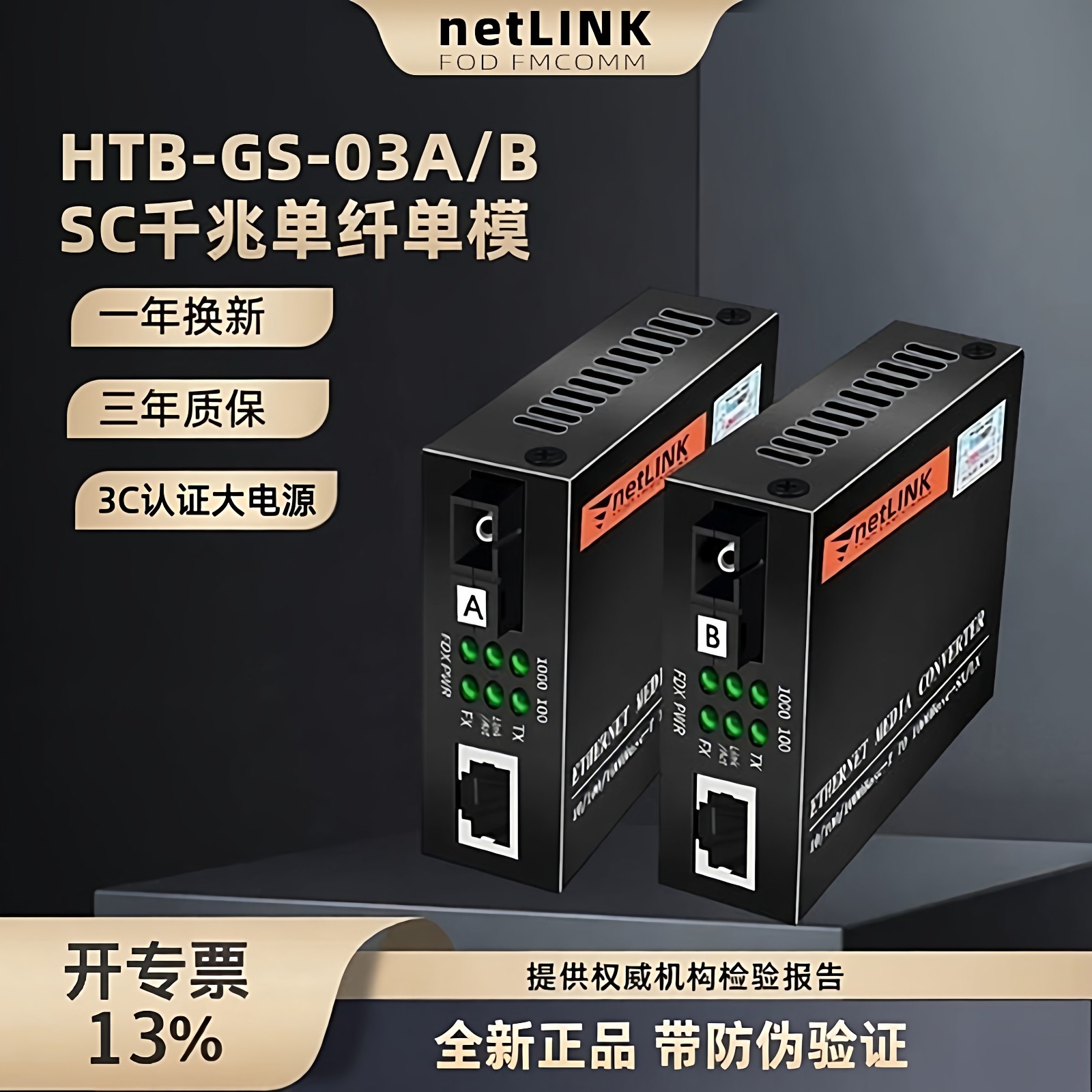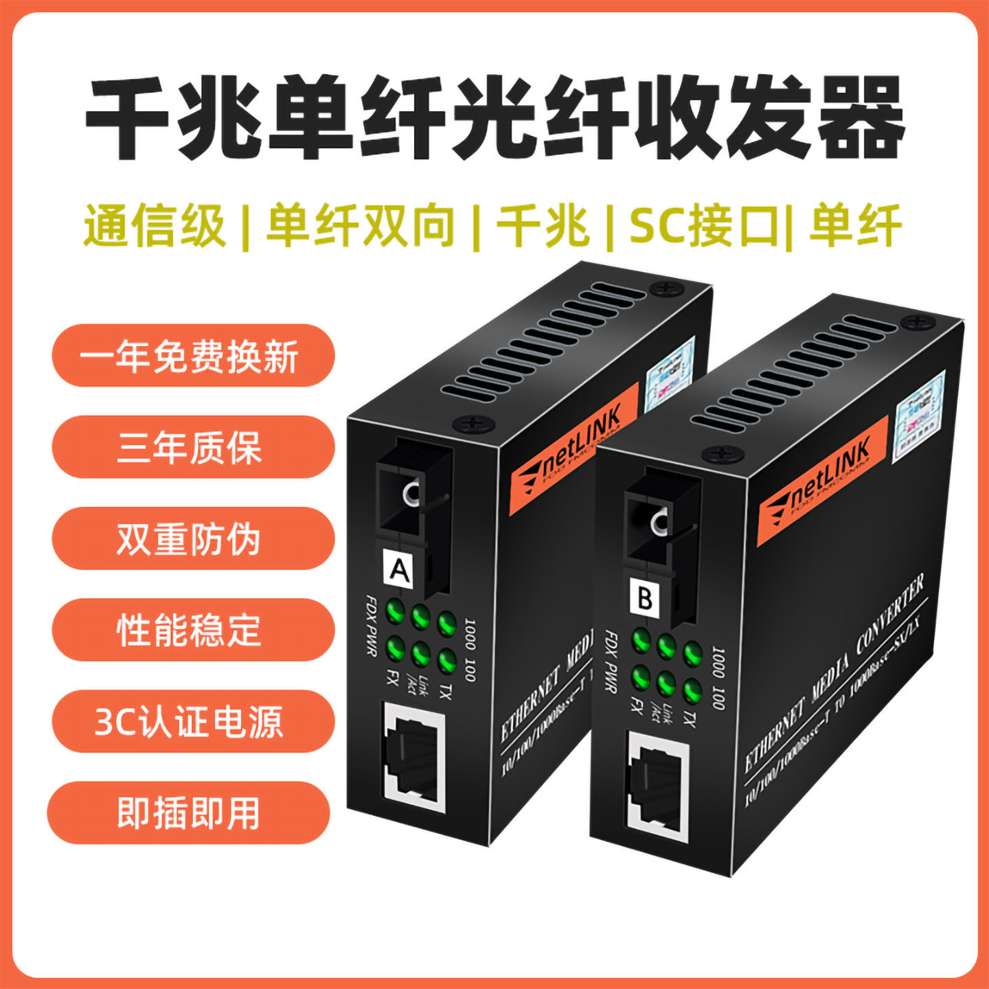 适用于Netlink千兆光纤收发器单模单芯FC单纤双向SC光电转换器HTB-GS-03AB光纤转RJ45光纤转网线口 converter