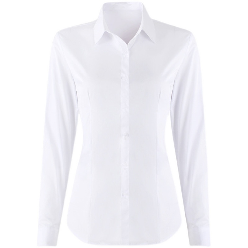 白色衬衫女长袖圆领春夏季新款修身显瘦正装纯棉抗皱职业短袖衬衣