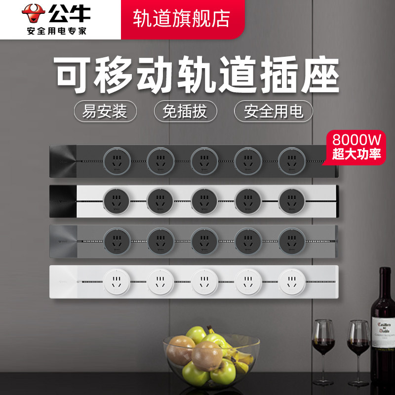 公牛轨道插座排插可移动60cm轨道插座导轨厨房客厅卧室无线排插