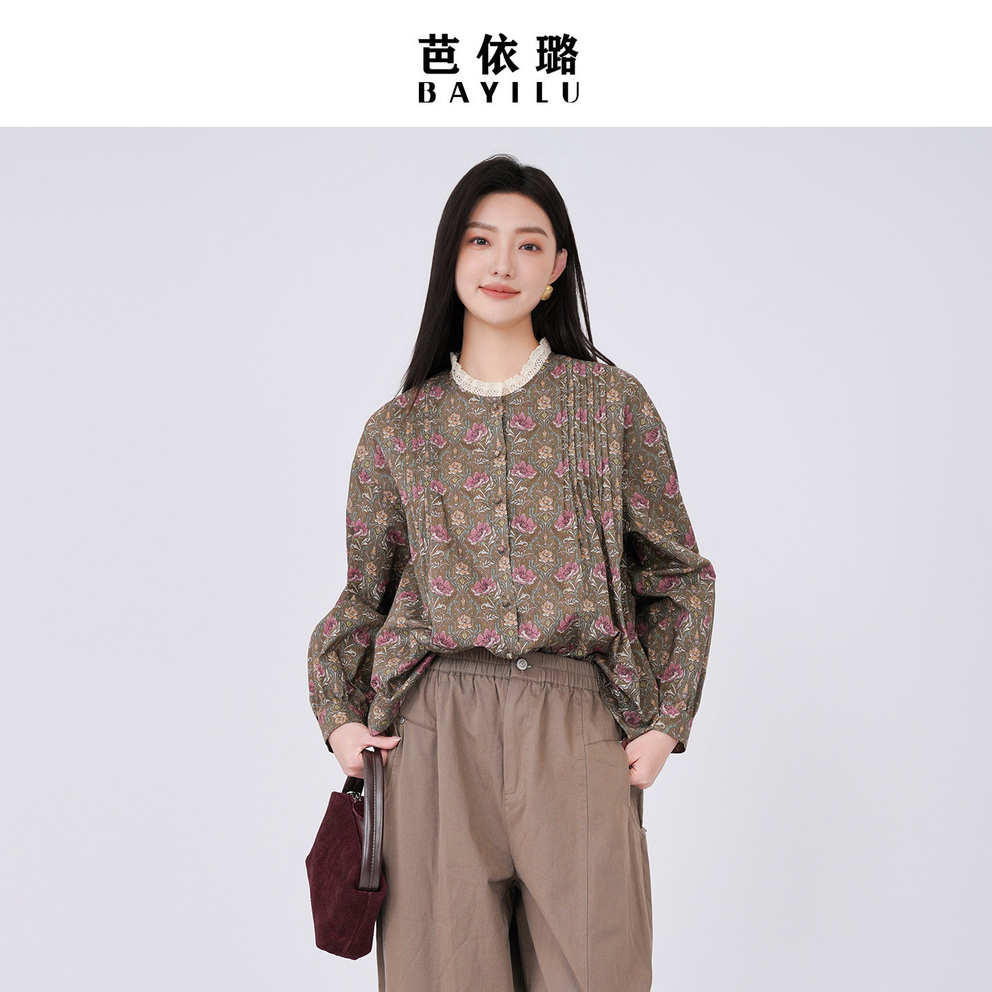 芭依璐2026春季蕾丝拼接韩版显瘦长袖衬衫女时尚百搭衬衣洋气女装