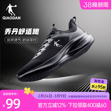 乔丹夏季网面透气运动鞋男鞋跑步鞋轻便软底减震休闲黑色爸爸跑鞋