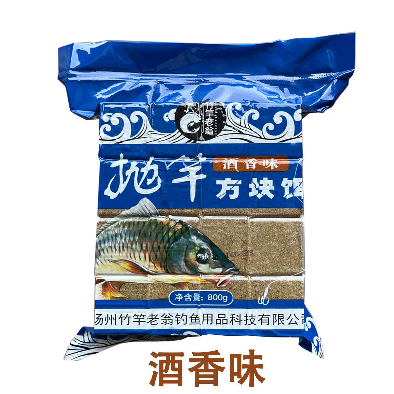 竹竿老翁方块鱼饵料海竿鲢鳙饵料爆炸钩抛竿料打窝料钩鱼海杆糠饼