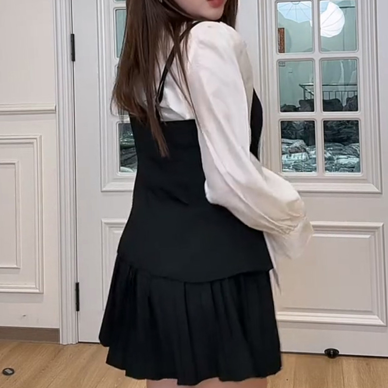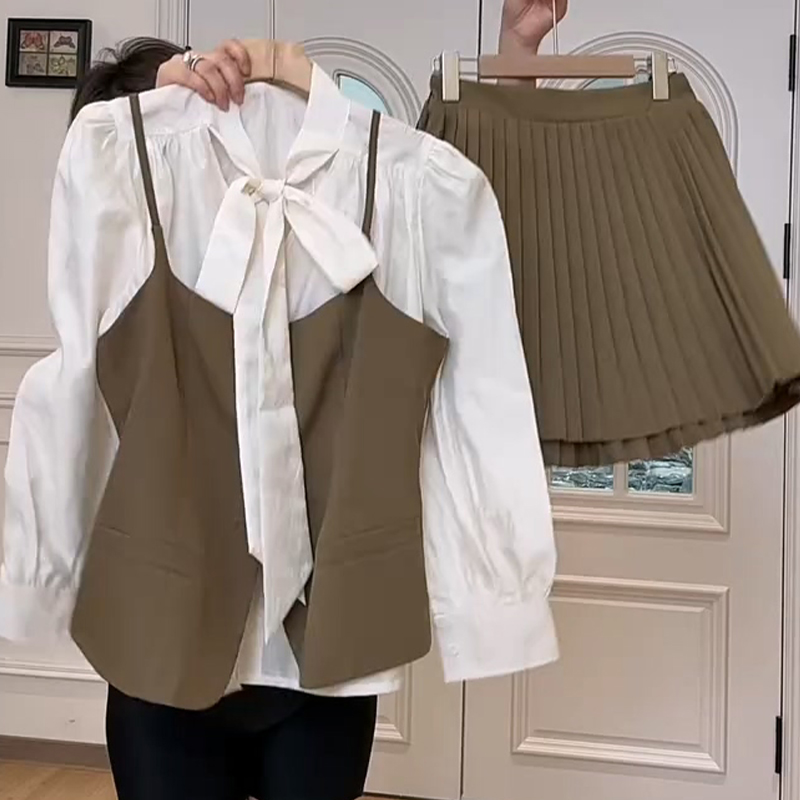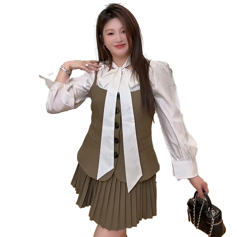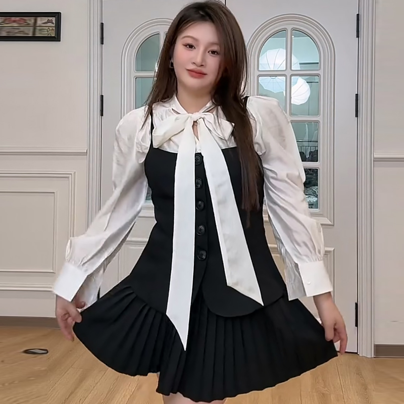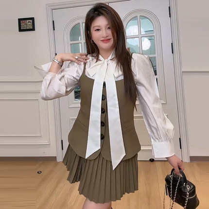 轻熟风西装吊带马甲衬衫百褶裙胖mm2025秋季新款显瘦宽松大码女装