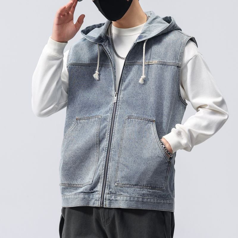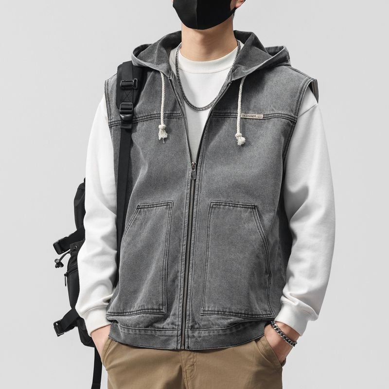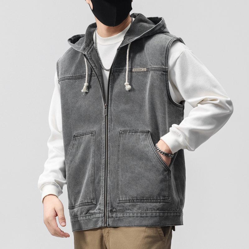 2025秋季牛仔连帽马甲男款潮牌休闲夹克外套潮流坎肩男士背心夹克