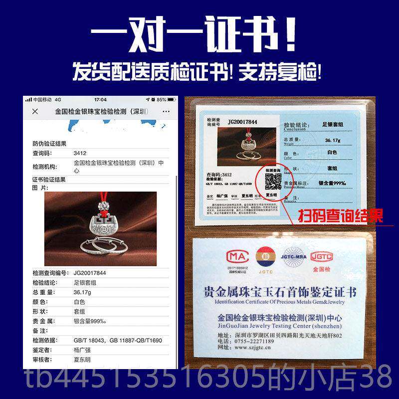 正品宝宝手镯99锁9纯满银长命锁婴儿银月童镯银子新生儿银饰礼盒