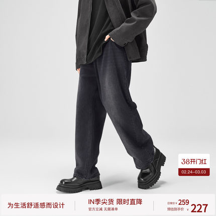 BODYDREAM喷马骝牛仔裤男猫须纹裤子渐变质感水洗蓝直筒裤休闲裤