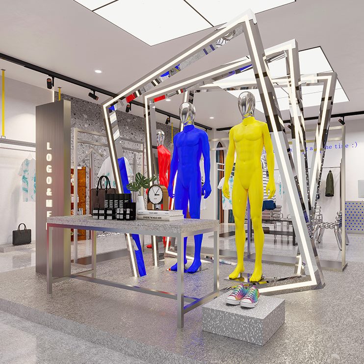 不锈钢板侧上墙壁挂挂衣架服装店展示架落地式多层背陈列挂架拉丝