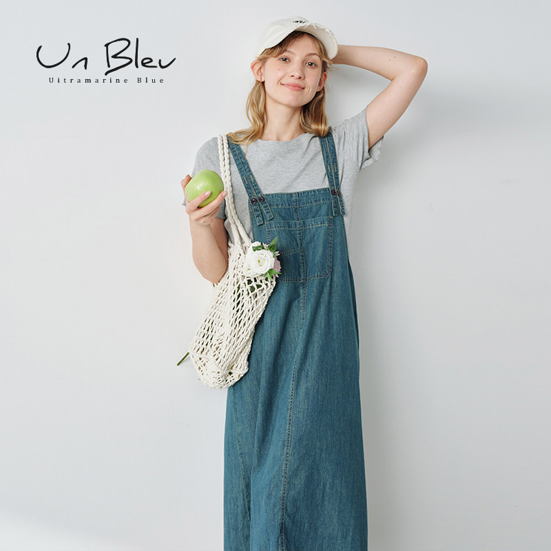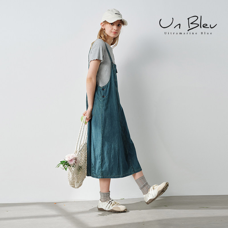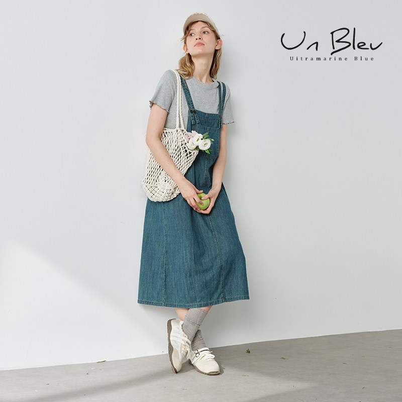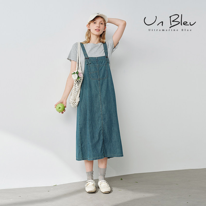 UnBleu牛仔套装裙女2025新款宽松休闲两件套学院风背带裙夏季女装