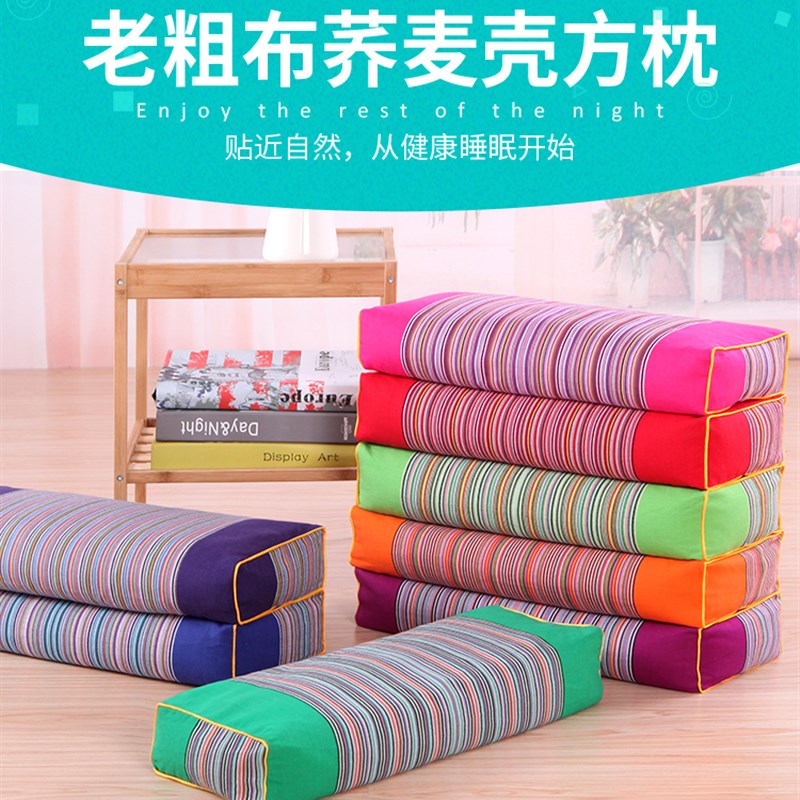 粗布枕头睡眠枕方形枕荞麦枕颈椎修复枕保护颈椎荞麦皮枕芯